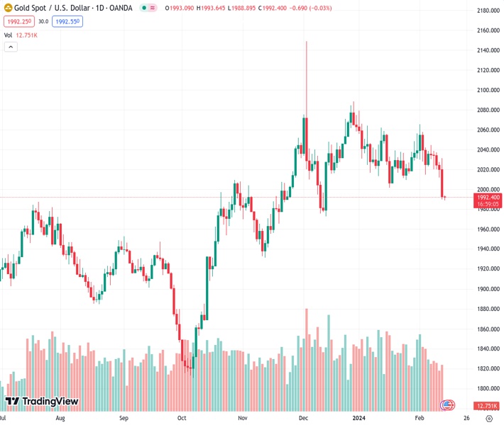 Gold price hits a fresh two-month low amid bets that the Fed will keep rates higher for longer.