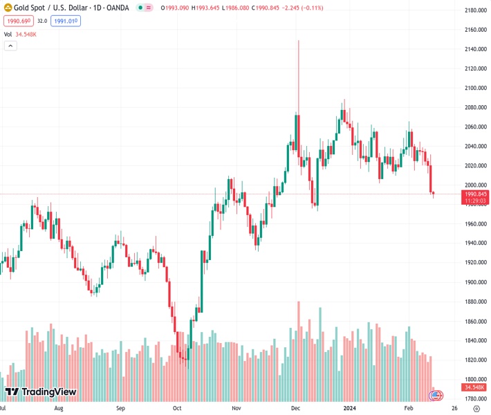 The short-term appeal has turned bearish as the 20 and 50-day Exponential Moving Averages (EMAs) have turned down. The Gold price is expected to find support near the 200-day EMA, which trades around $1,970.
