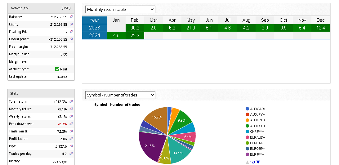 HFT_FIX SYSTEM FEB Returns = +22.3% Total returns =212% with max DD 8%