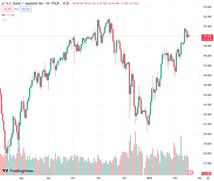 At the time of writing, USD/JPY is trading 0.15% lower on the day at 150.00.