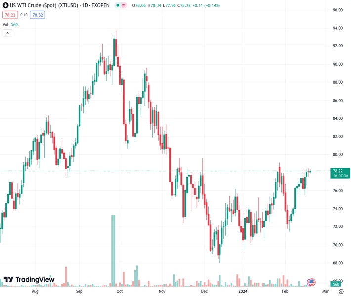 Crude oil prices cheer the positive economic news from the largest oil importer China. The People’s Bank of China (PBoC) has opted to keep its one-year Loan Prime Rate (LPR) unchanged at 3.45%. However, the PBoC has reduced the five-year LPR by 25 basis points from 4.20% to 3.95% to support its struggling economy. Furthermore, China experienced a significant increase in annual tourism revenues during the national Lunar New Year holiday period.