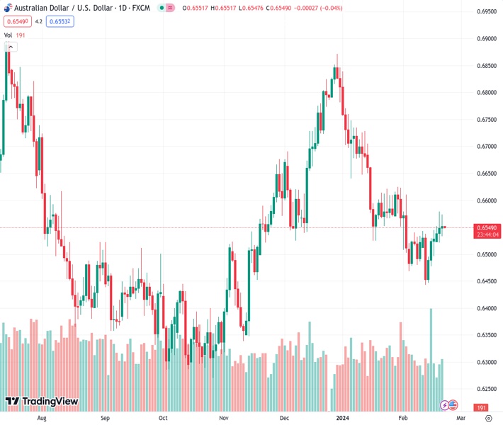 The AUD/USD remains stuck near 0.6550 with the pair bolstered by the 200-hour Simple Moving Average (SMA) near 0.6520, but bullish momentum remains pinned below the week’s near-term high around 0.6580.