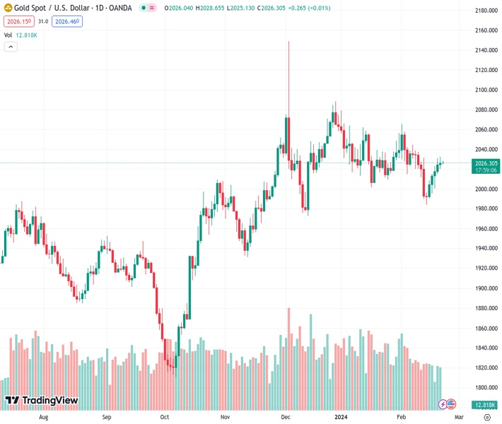 Gold price (XAU/USD) edges higher during the Asian session on Thursday, albeit remains below the 50-day Simple Moving Average (SMA) pivotal resistance, around the $2,032 area, or over a one-week high touched the previous day. The Middle East conflict continues to underpin demand for traditional safe-haven assets, which, along with a weaker US Dollar (USD), acts as a tailwind for the precious metal. The uptick, however, lacks bullish conviction in the wake of firming expectations that the Federal Reserve (Fed) will keep interest rates higher for longer.