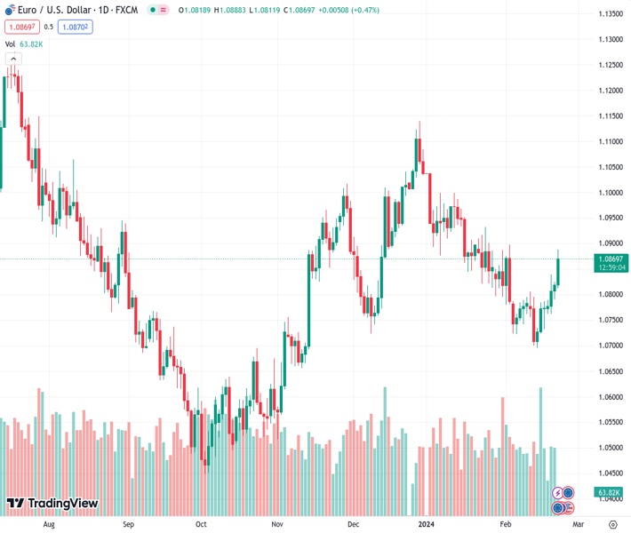 The S&P Global PMI report will be released this Thursday at 14:45 GMT. Ahead of the event, the US Dollar has been trimming panic-related gains, with EUR/USD currently trading at around 1.0800. The pair collapsed to 1.0694 in mid-February following the release of the January US Consumer Price Index (CPI), which surpassed market expectations, but as market players assumed that a Fed’s rate cut would be more likely for June, the sentiment began improving.