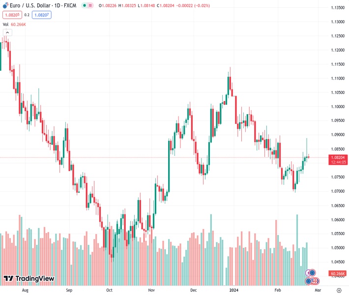 At the press time, EUR/USD is holding steady near 1.0821, despite rising inflation expectations.