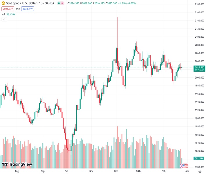 Gold price rebounds after sliding to a fresh two-day low below $2,020 as investors need fresh insights on the interest rate outlook. The near-term outlook remains sideways as the precious metal trades in a Symmetrical Triangle chart pattern.
