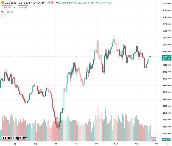 Gold price (XAU/USD) trades with a mild positive bias during the Asian session on Friday, albeit lacks follow-through and remains below a nearly two-week high touched the previous day. The minutes of the late January FOMC meeting, along with the recent comments by influential Federal Reserve (Fed) officials, suggested that the central bank is in no hurry to cut interest rates. This remains supportive of elevated US Treasury bond yields, which, along with an extension of the risk-on rally across the global equity markets, turn out to be key factors acting as a headwind for the non-yielding yellow metal.