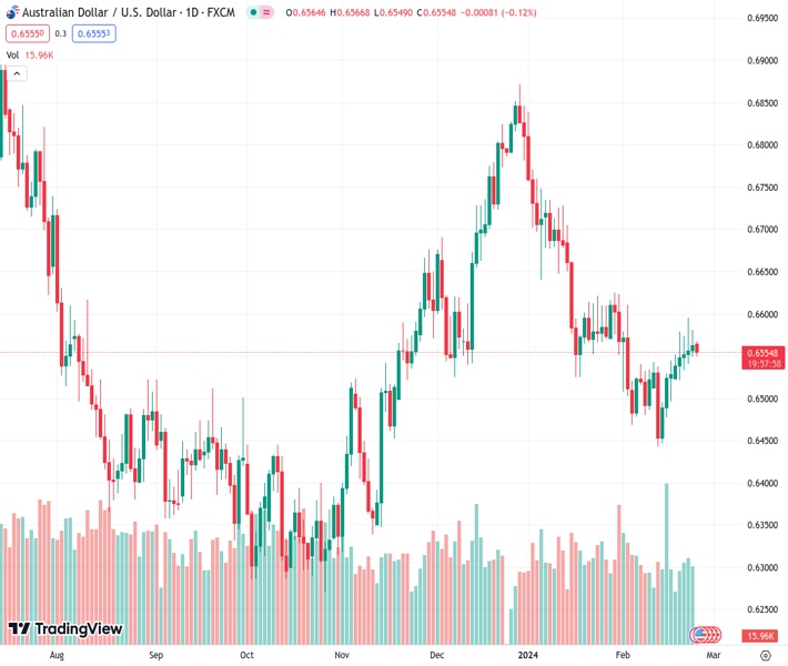 The Australian Dollar (AUD) halts its winning streak initiated on February 14. This decline is influenced by Monday’s downward movement of the S&P/ASX 200. However, the Australian money market opened higher mirroring the optimism that propelled Wall Street to a record high on Friday. These market movements coincide with Nvidia’s exceptional earnings, which spurred a surge driven by robust demand for artificial intelligence-related products.