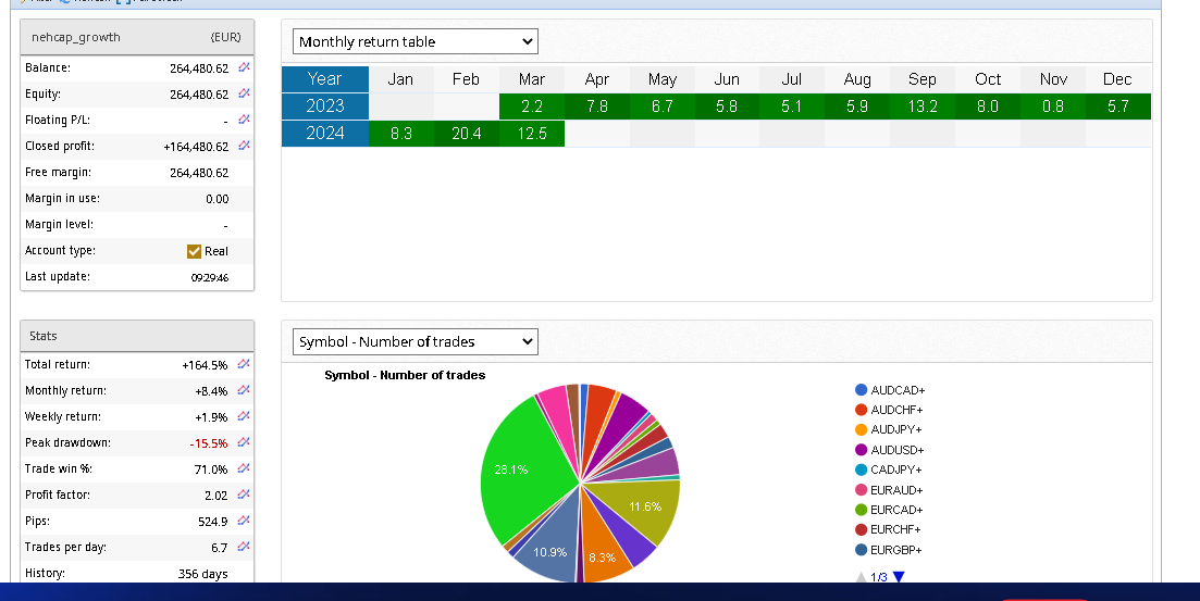 The EA_GROWTH March returns stand at a solid +12.1% gain. This is a system that operates on MT4. Exceptionally consistent and uses 1:2 r:r. The system works on major forex pairs. Highly intelligent and uses impulses at key support / resistance levels through orderblocks.