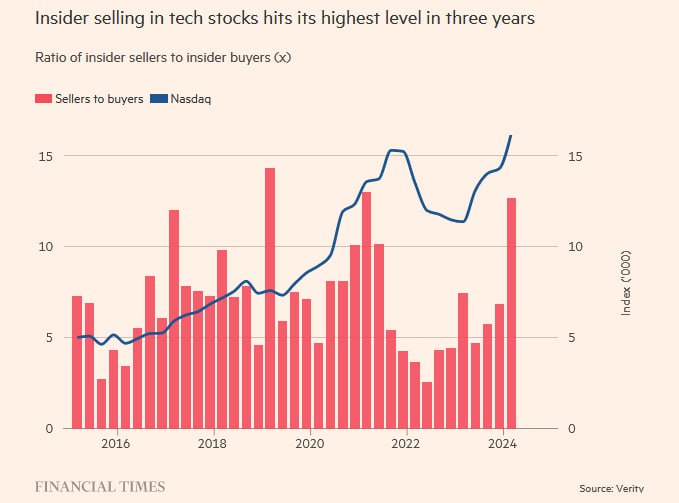 **Peter Thiel, Jeff Bezos and Mark Zuckerberg** leader(https://www.ft.com/content/3bcc3949-0bf6-4f41-bc46-57cbb0df3a7f) **a parade of corporate insiders who have sold their companies’ shares for hundreds of millions of dollars this quarter, signaling that the recent stock market rally may be peaking https://tinyurl.com/24m2u58y