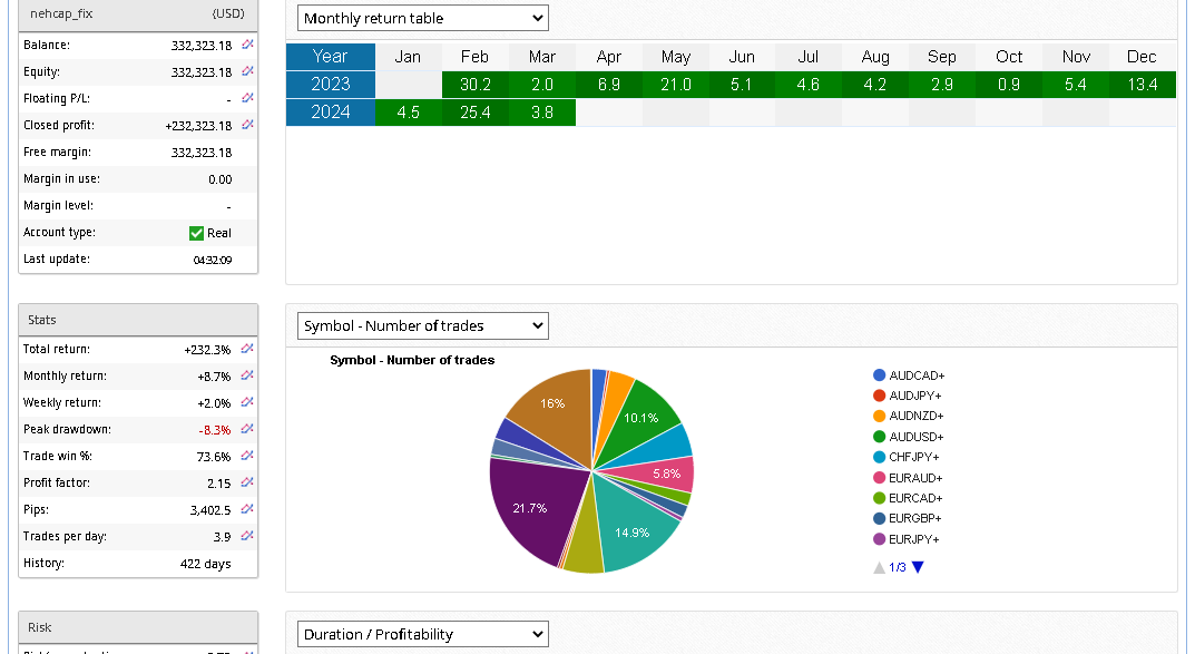 The high frequency trading system (HFT_FIX) operating on FIX accounts on brokers that allow FIX channel, is doing very well. March returns are at +4%. Trades around high impact news. Tight stops allow the system to exit with quick profits.