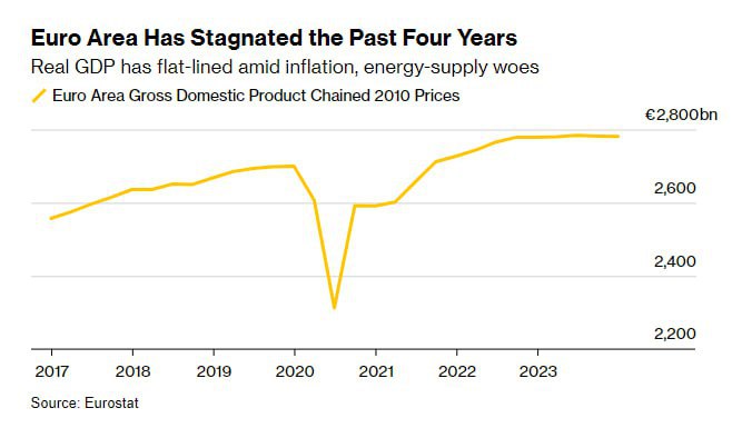 For the last four years the eurozone has been stagnating. Real GDP is not growing amid inflation and problems with energy supplies**