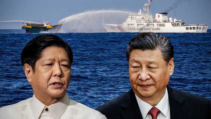 The clash between China and the Philippines continues intensifying in the contested waters of the South China Sea : Manila accuses Chinese vessels of repeatedly harassing Philippine boats with water cannons and other methods, such as deliberately colliding with them. Source