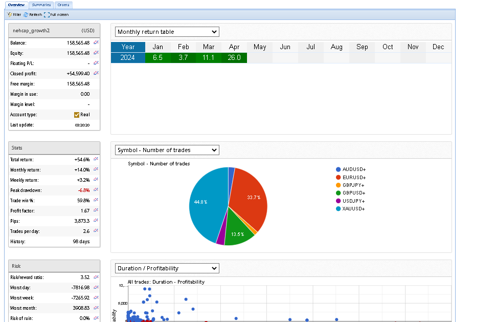 The EA_GROWTH April 2024 returns rises to +26% in the current month . This is a system that operates on MT4. Exceptionally consistent and uses 1:2 r:r.