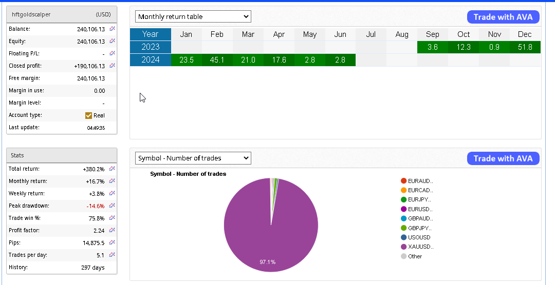 The EA_GOLD has continued its upward rise with steady curve. No DD. The system is hyper careful of DD . Its not a GRID system so its a system with hard stop losses controlled by DAILY DD LIMITS AND MAX DD LIMITS.