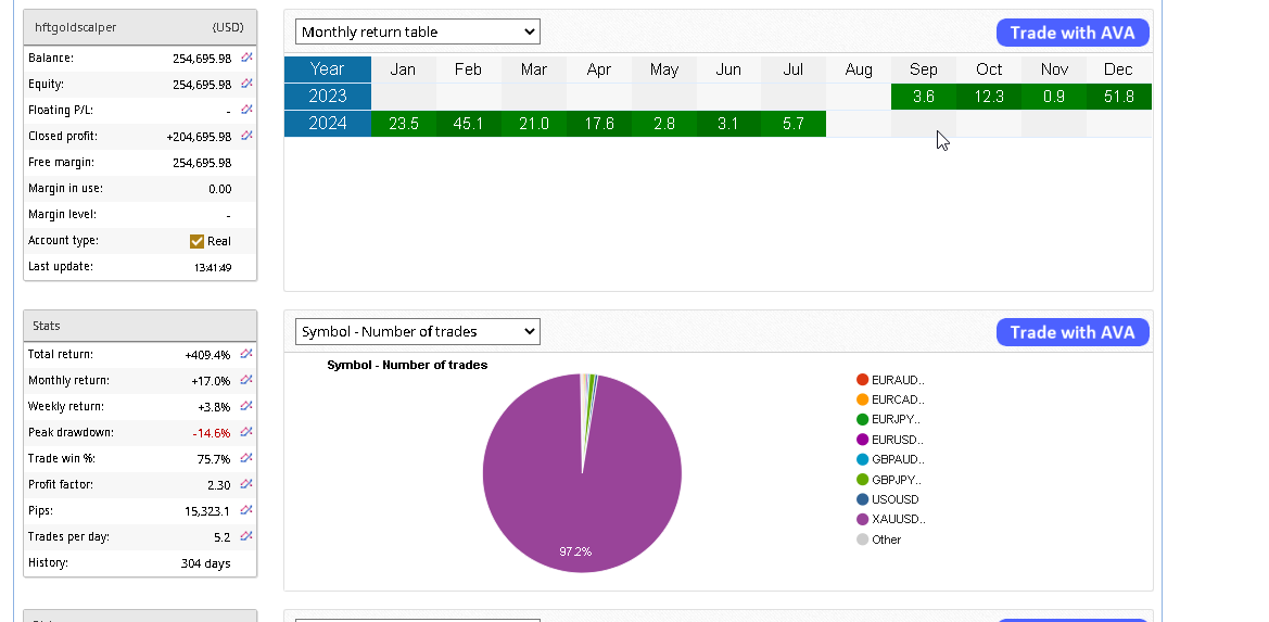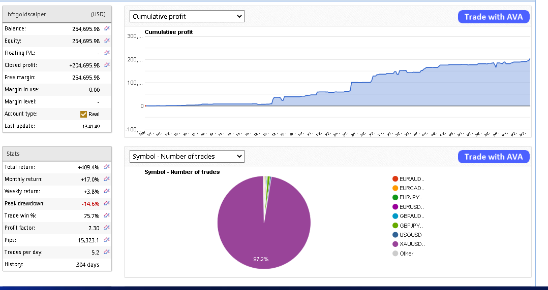 Low DD and all months positive trading. Live trading