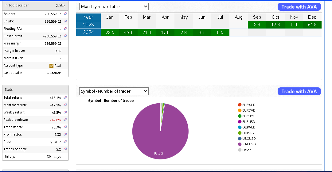 EA GOLDSCALPER JULY RETURNS BLAZES HIGHER +6.5%. EVERY MONTH HAS BEEN STRONGLY POSITIVE RETURNS
