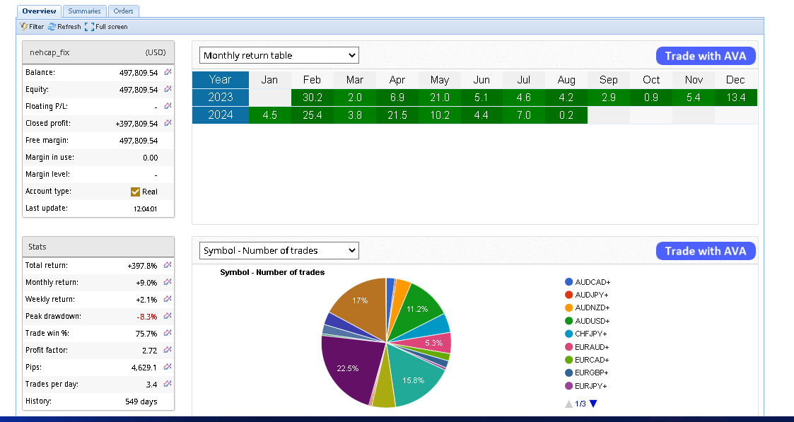 EA HFT_FIX has been running live since Feb 2023. Over a year old, the system is as solid and stable as ever. EA HFT_FIX system remains our most professional system for large accounts. The system operates on FIX channel as it sends high frequency trades which are scalping in nature. Its highly stable system. Get in today.
