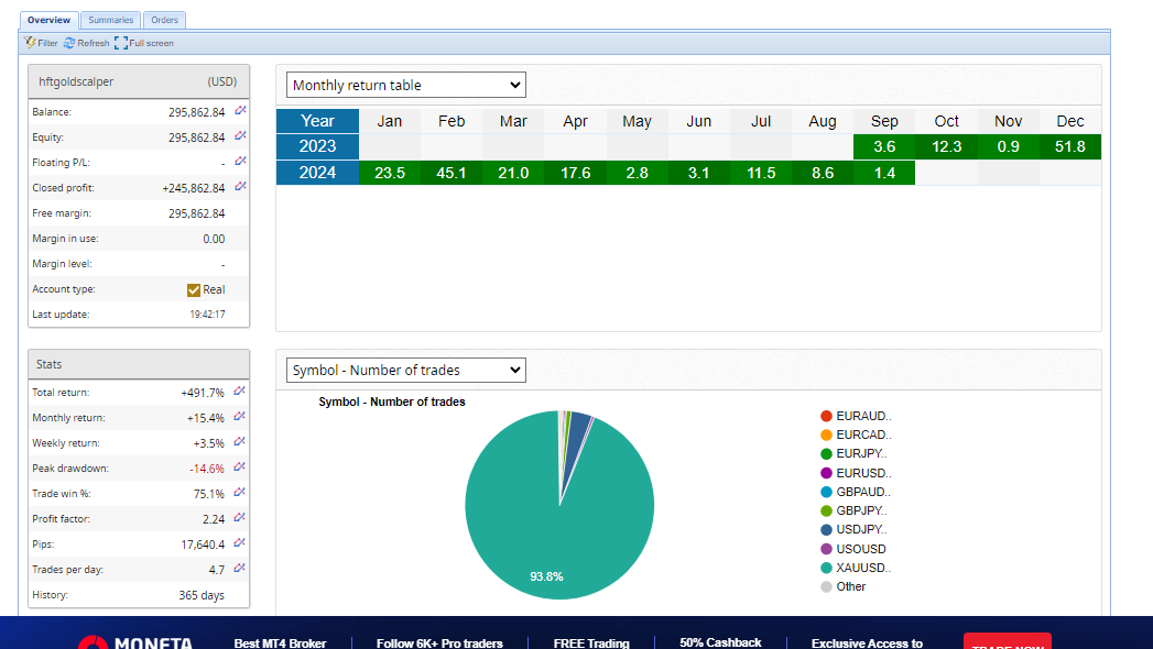 The EA_GOLDSCALPER from nehcap is the FINEST AND WORLD BEST GOLD trading system. No one else has such a long history of real tracking and making money continuously. August overall returns at +8.6%