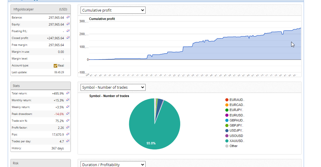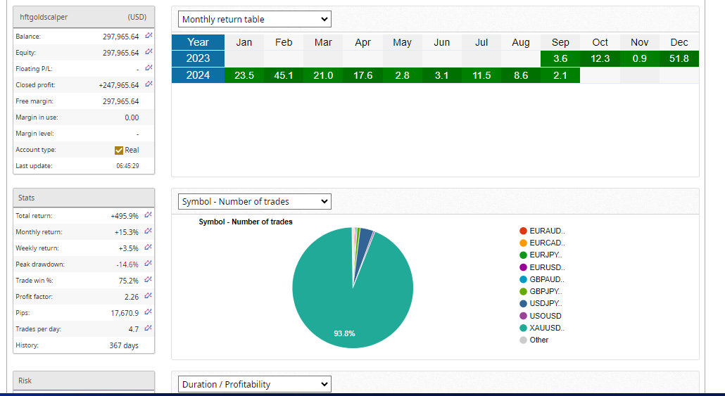 The EA_GOLDSCALPER from nehcap is the FINEST AND WORLD BEST GOLD trading system. No one else has such a long history of real tracking and making money continuously. September trading is strong with over +2.1% added to our 296k account. Get in now and start getting these trades.