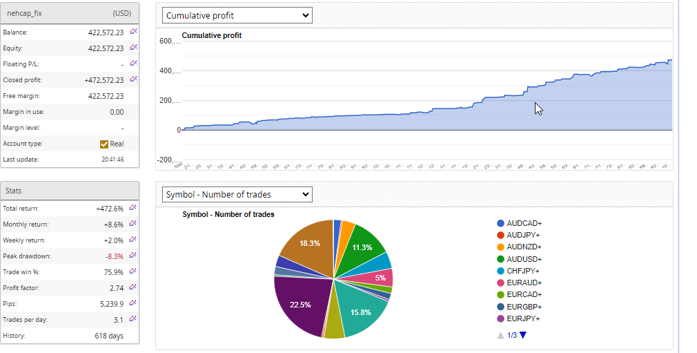 - Profit Withdrawal Impact: A significant profit withdrawal of $150K was recently made, highlighting the system’s profitability. Even after this withdrawal, the account maintains a healthy balance of $422K, underscoring the system’s ability to generate substantial returns while allowing for regular profit extraction.