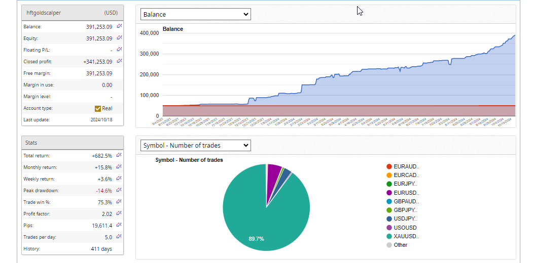Leveraging its high-frequency scalping strategy, GOLDSCALPER EA continues to deliver consistent performance, capitalizing on key market opportunities with precision, particularly during critical sessions such as the New York market open. October’s results have shown exceptional growth, further solidifying the system’s strong track record.