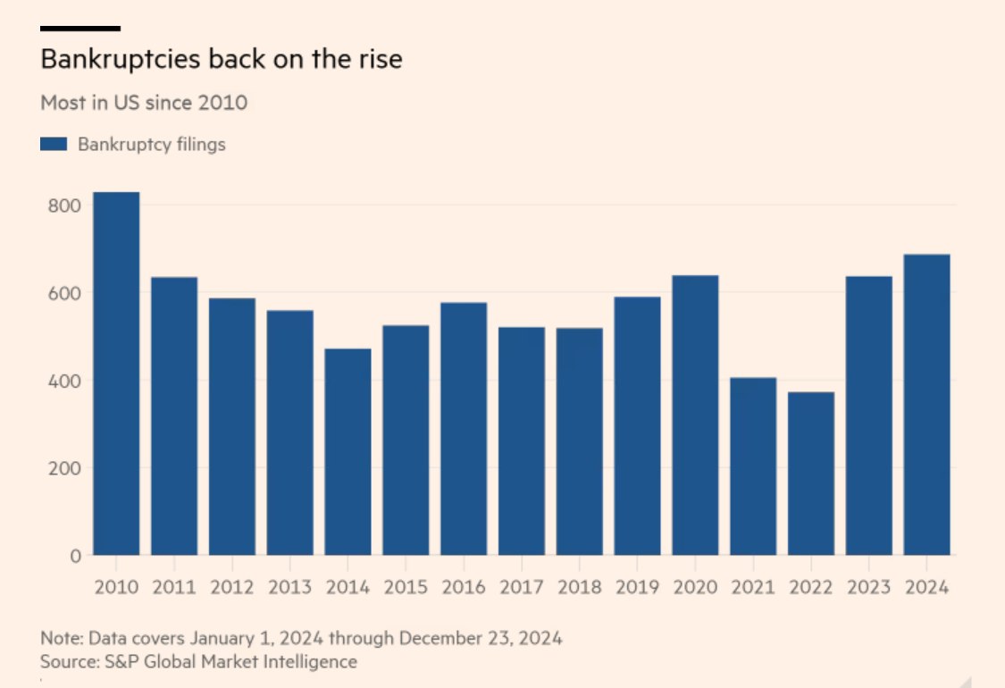 US CORPORATE BANKRUPTCIES AT 14-YEAR PEAK: CORPORATE BANKRUPTCIES IN THE US HIT A 14-YEAR HIGH DUE TO RISING INTEREST RATES AND WEAK CONSUMER DEMAND. By nehcap - January 8, 2025 0 215 FacebookTwitterPinterestWhatsApp Share this: Click to share on Facebook (Opens in new window) Facebook Click to share on X (Opens in new window) X Like this:Like Loading...