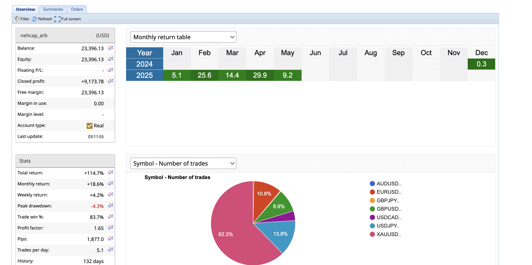 The system has been solid and stable. The monthly returns are shown below.
