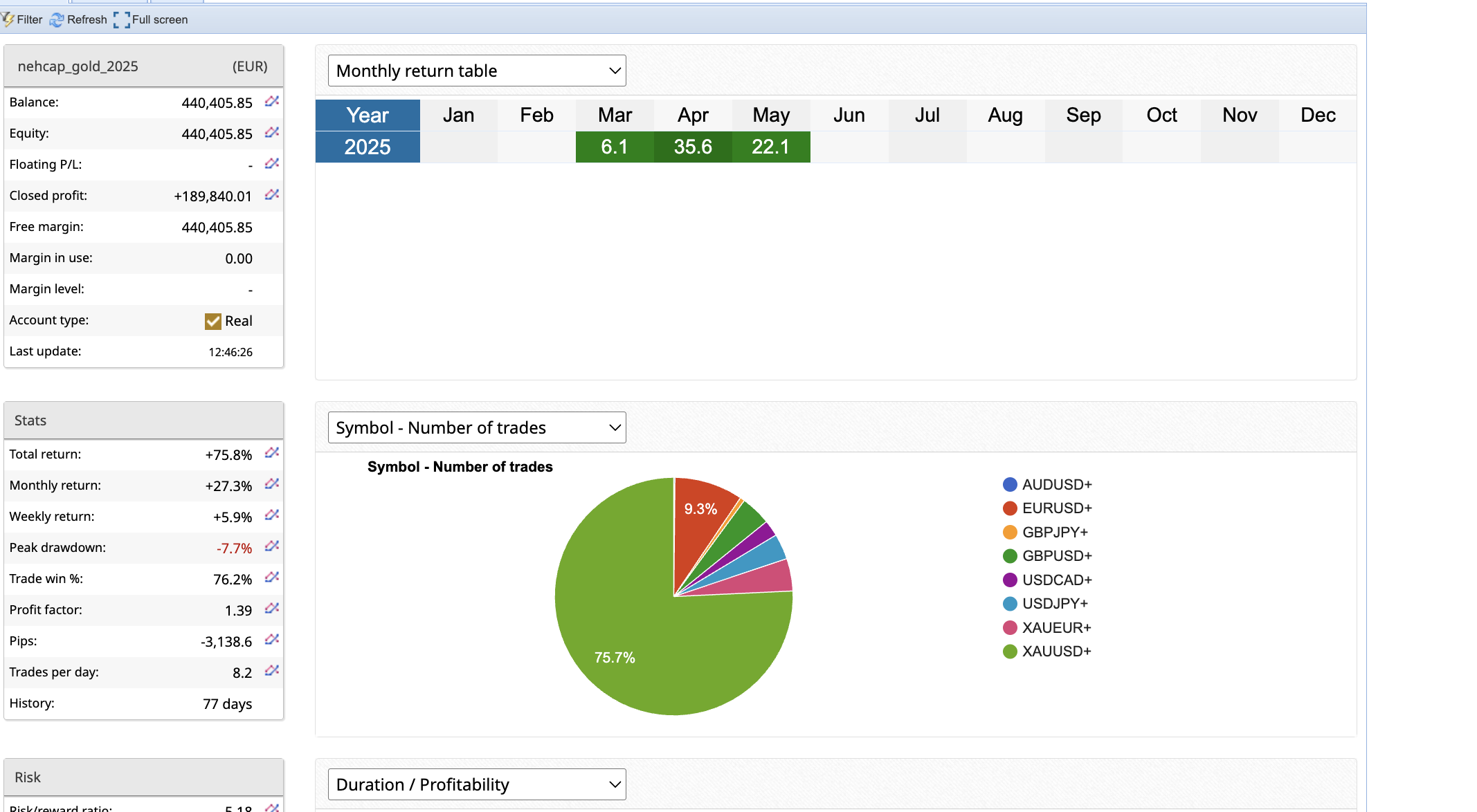 LIVE ACCOUNT GOLDSCALPER MAY RETURNS RISES +22.9%. POWERFUL SCALPING. GREATEST GOLDSCALPER SYSTEM.