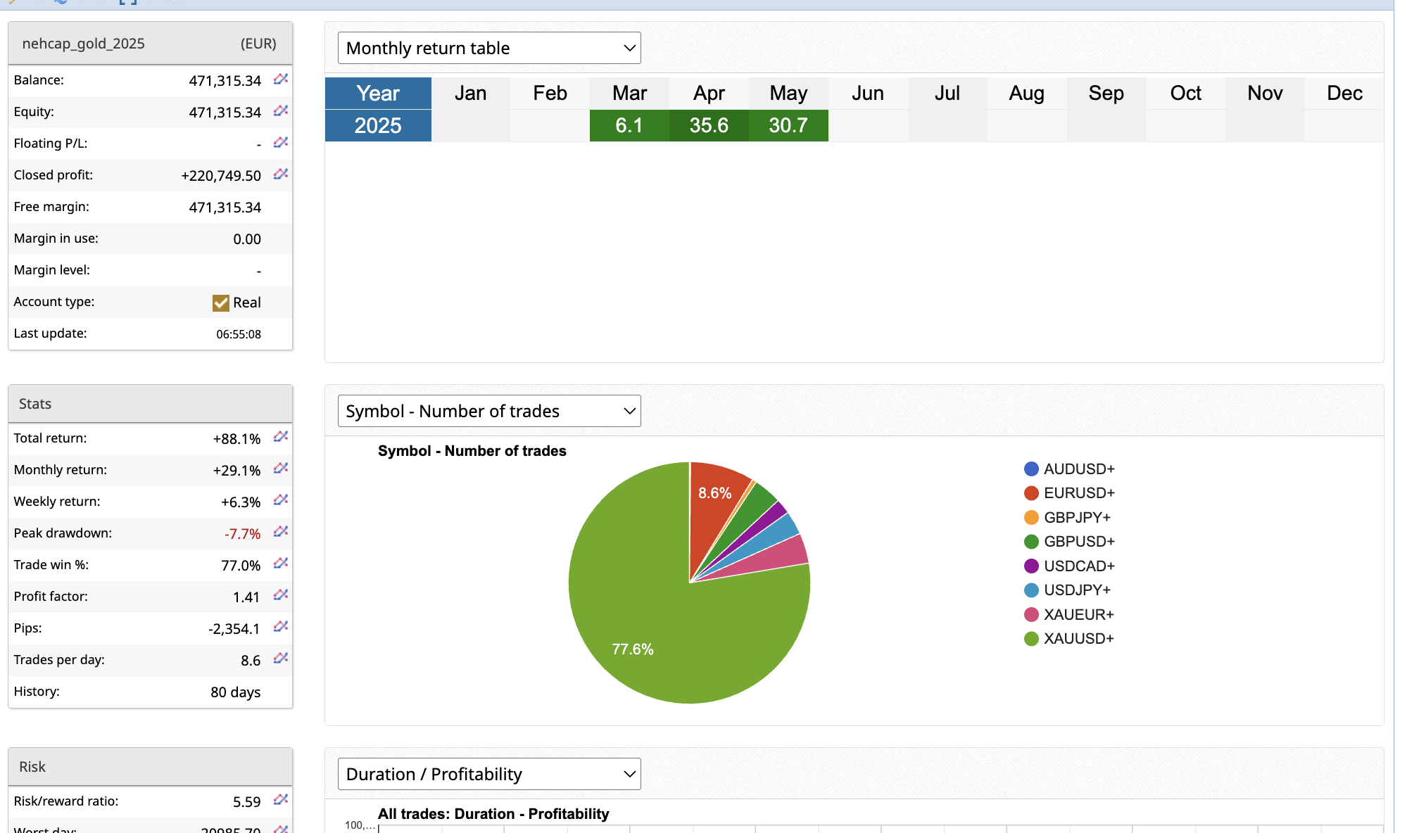 GOLDSCALPER is an insanely brilliant SCALPER system on GOLD. Live account for over 2 years running beautifully. On a regular basis the system continues to make between 20% and 30% return. MAY RETURNS UP +30%. APRIL RETURNS CLOSE AT +35%. A true tested LEGEND of a wealth maker !
