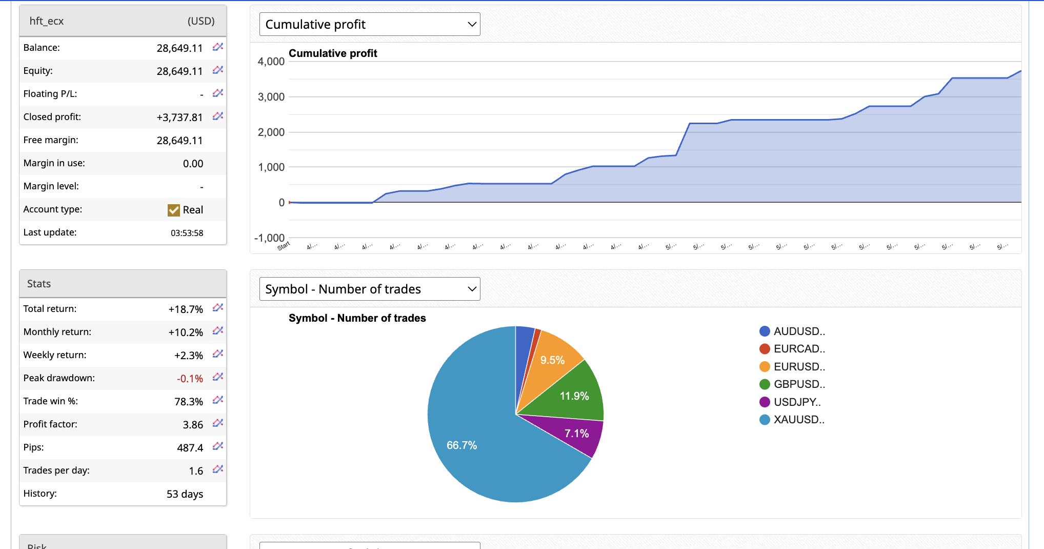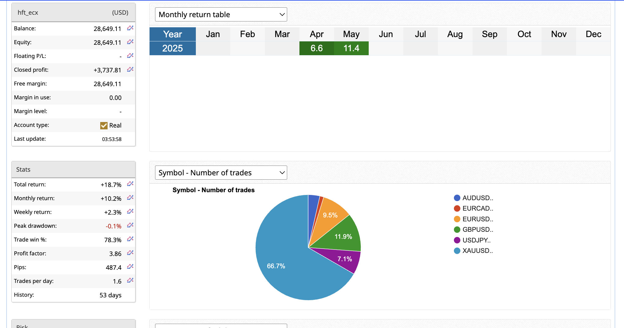 HFT_ECX has started May trading with +11% return added for May. In the tradelist screenshot it shows it super fast entry as fast as data is releeased and before it even hits retail platforms, the system is traded in and out. It sends FOK orders to the broker which will execute based on the depth of tick density they have. Very powerful system. Its built on teh same platform of our popular hft_fix system