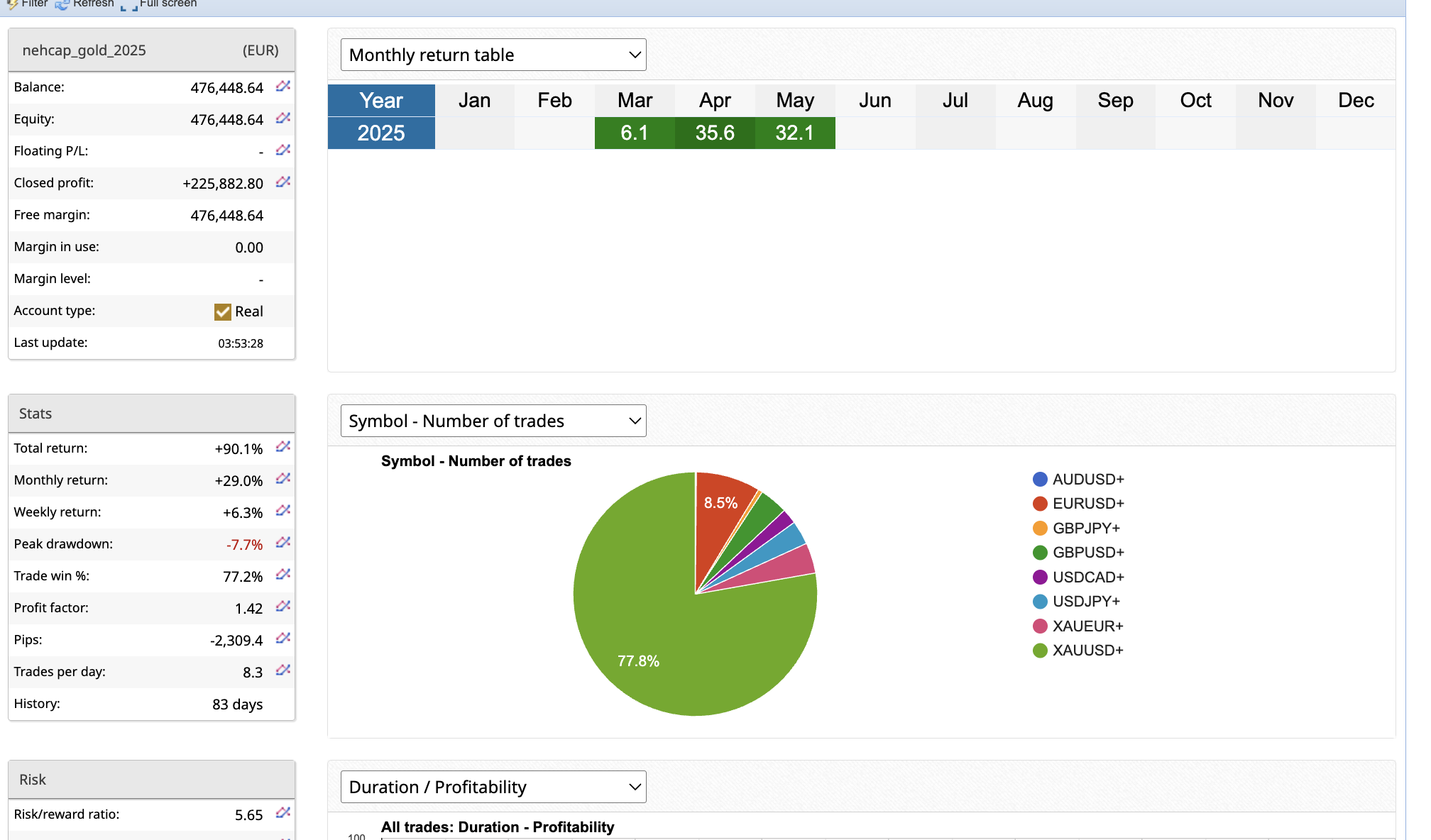 LIVE MT4 GOLDSCALPER CRUISES HIGHER IN MAY AS RETURNS CLIMB HIGHER ABOVE +32%. PHENOMENAL AND BRILLIANT TICK SCALPING ON GOLD