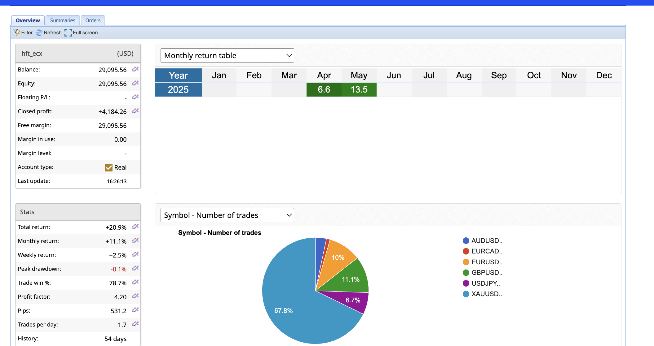 HFT_ECX has started May trading with +13.5% return added for May. In the tradelist screenshot it shows it super fast entry as fast as data is releeased and before it even hits retail platforms, the system is traded in and out. It sends FOK orders to the broker which will execute based on the depth of tick density they have. Very powerful system. Its built on the same platform of our popular hft_fix system