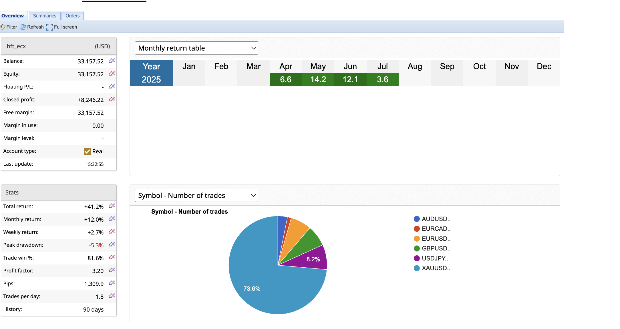 This trade highlights how GoldScalper merges event-driven HFT with gold’s liquidity. By front-running retail order flow post-PMI, the system exploits inefficiencies faster than candlesticks can form—proving its edge in volatility arbitrage. June’s +28% return was built on hundreds of such trades, now extending into July with the same precision.