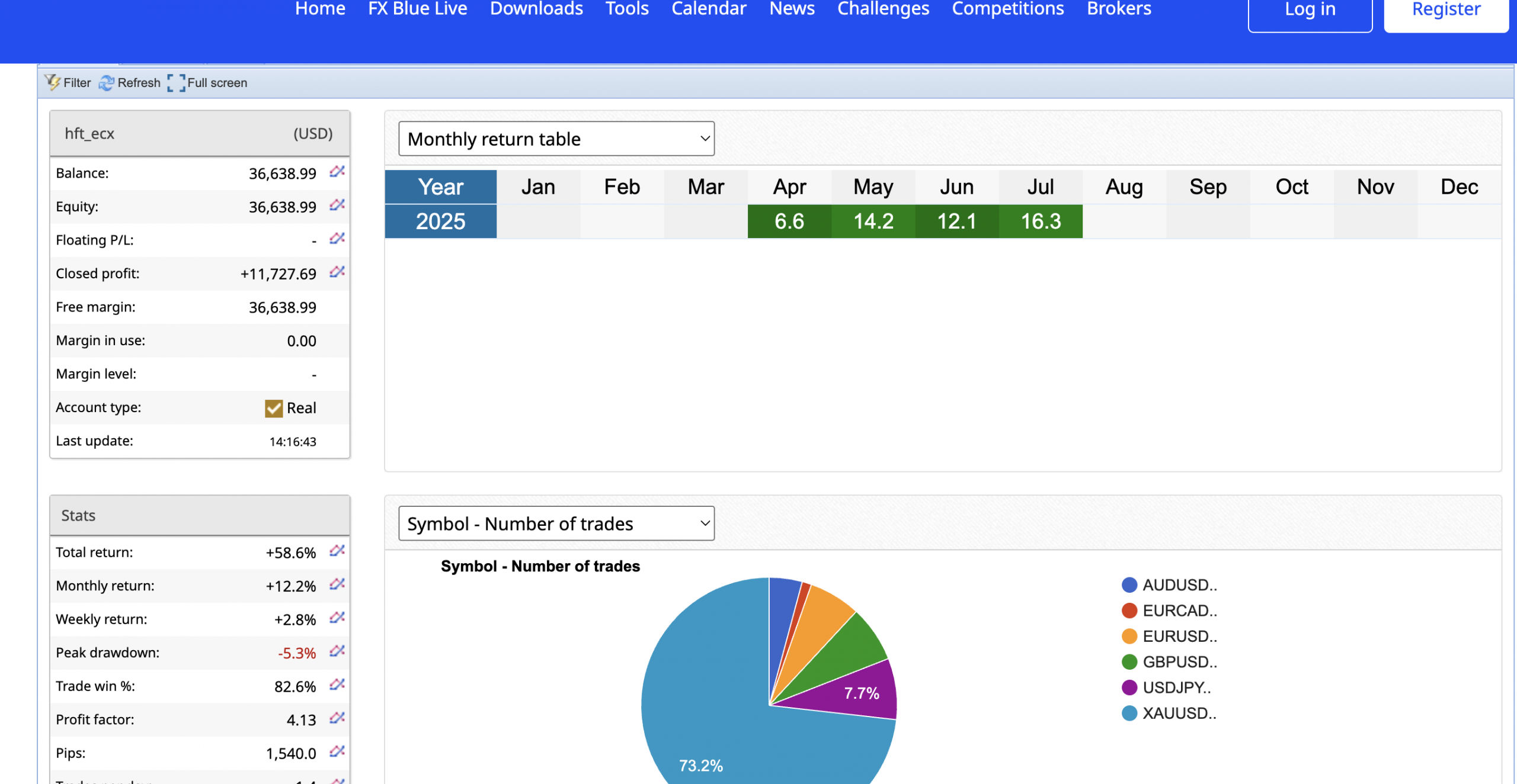 The July trades have crossed +16%. Brilliant and fast trades. No grids or martingales.