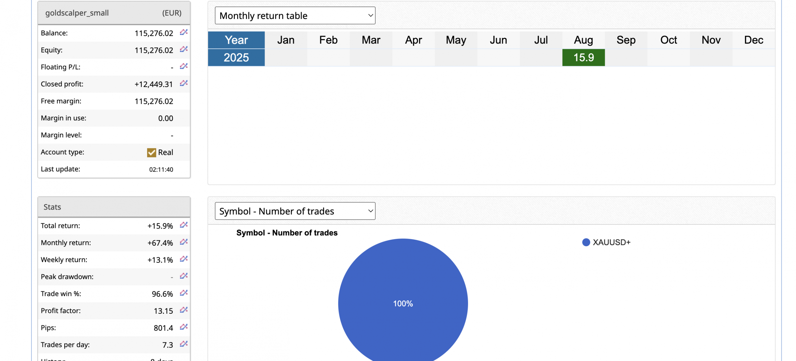 Here we have a 100k account on GOLD making another solid +15% gain