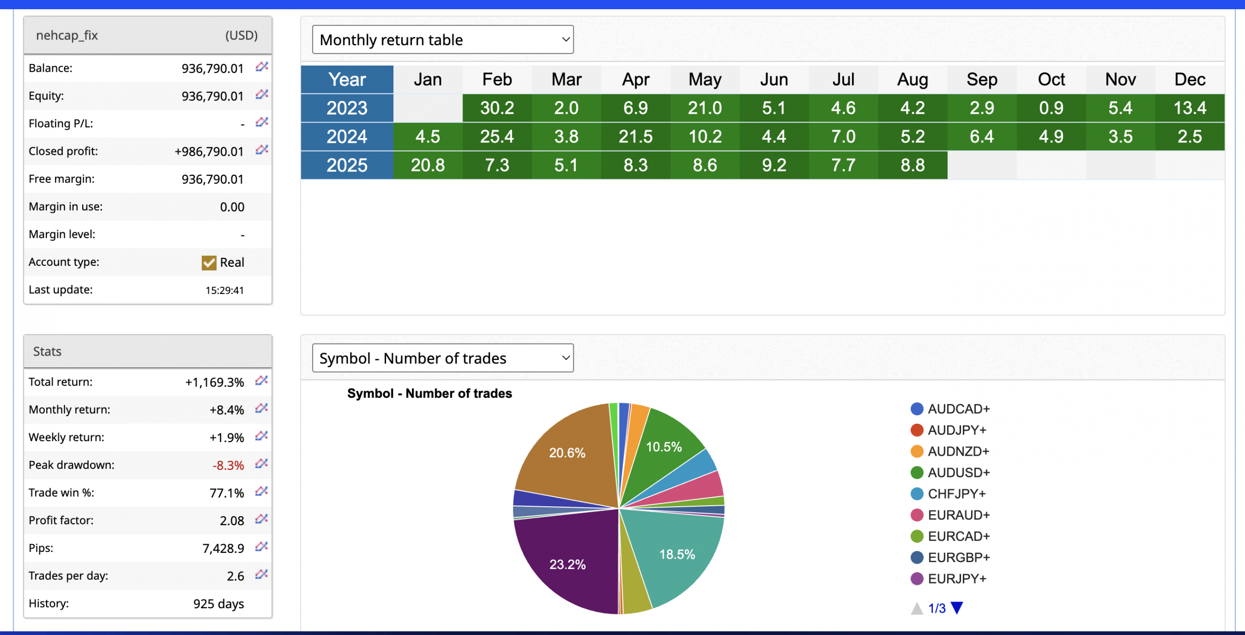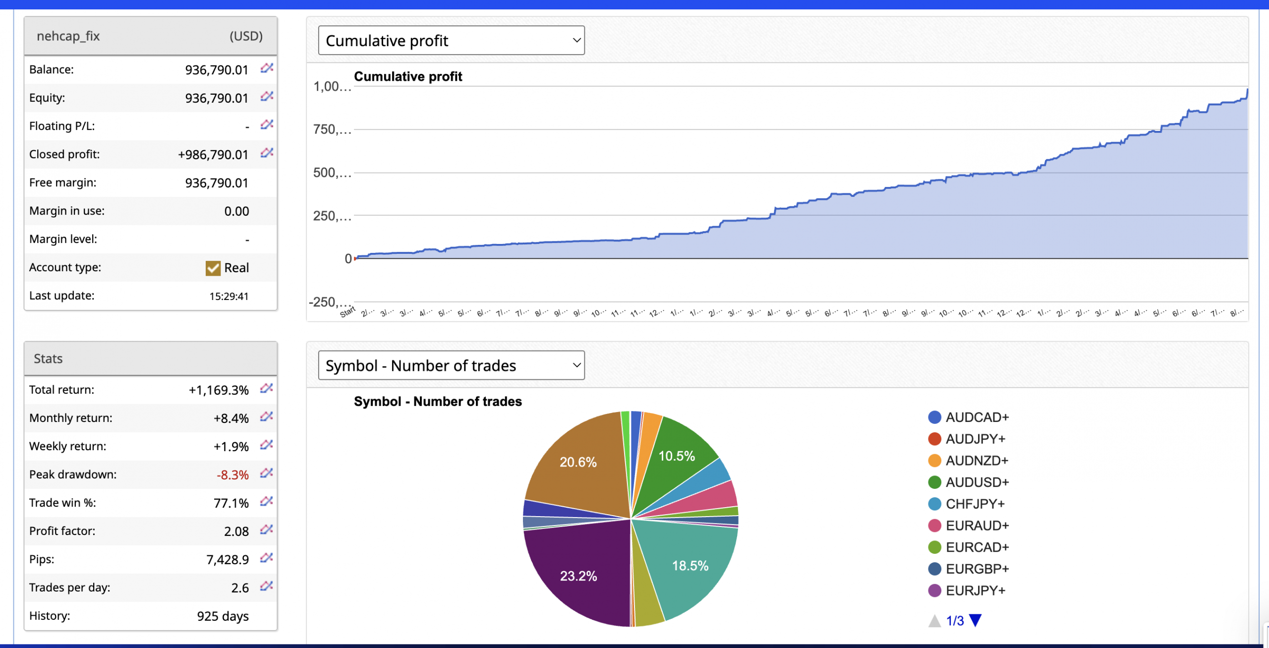 hft_fix continues to deliver outstanding results, consistently proving its reliability as a high-frequency trading system. Its landmark achievement of +500% overall returns, combined with controlled drawdowns and steady profit accumulation, solidifies its position as a leading tool for traders seeking consistent growth in a dynamic market. The system’s ongoing success underscores its value in the HFT domain, providing a strong foundation for future gains.