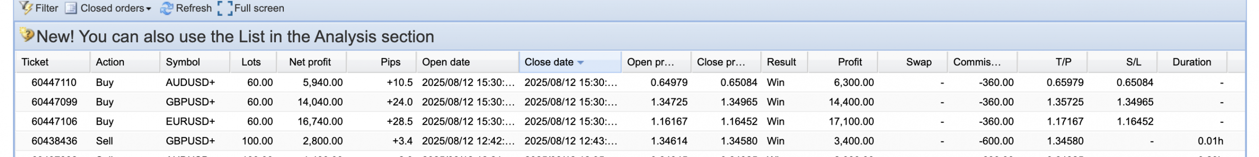 See how those trades were taken at release of data all at blazing speed. Done with FOK orders sent on FIX 4.4. Executed without zero slippages as these are FOK order.