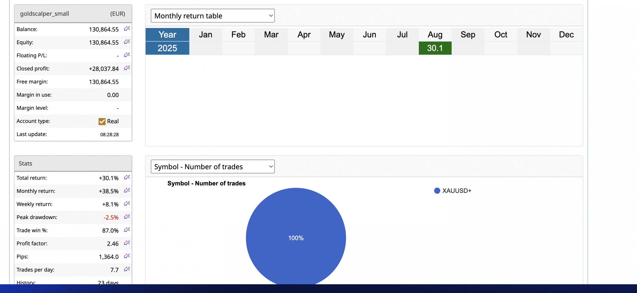 GOLDSCALPER EA continues to add returns in to August trading.